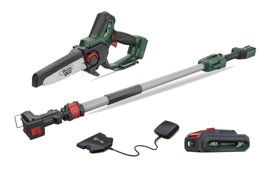 Tackle pruning with ease using the Webb 20V Cordless 15cm Pruning Saw. Lightweight yet powerful, it features a telescopic pole for reaching higher branches without ladders, plus precise, fast cutting. With up to 40 minutes’ runtime, it’s perfect for maintaining medium to large gardens effortlessly.