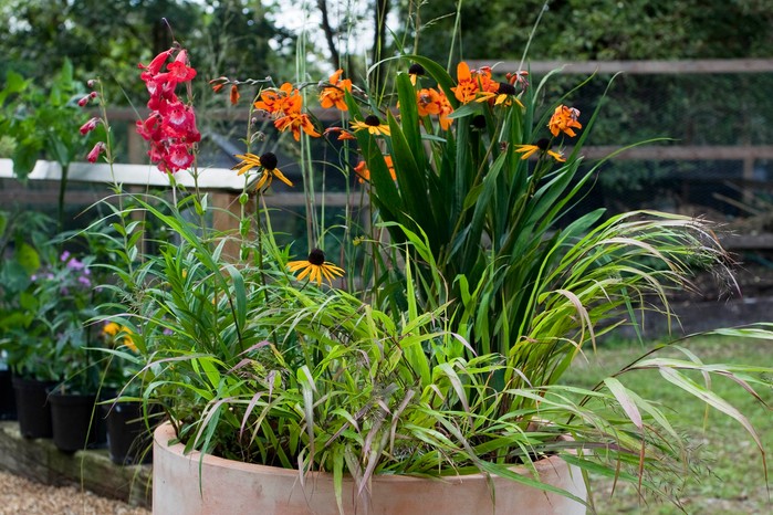 Our selection mixes traditional bedding plants such as garvinea with perennials such as black-eyed Susan (Rudbeckia), achillea and penstemon, with grasses and foliage plants for extra interest. Take inspiration from our selection, below, and watch these video guides, showing how to plant up a pot for summer colour and how to water and care for it.